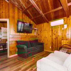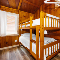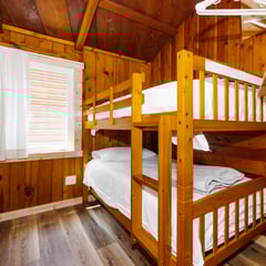 Cabin 10 sleeps up to eight people with two queen size beds, a set of bunk beds, and a sofa sleeper.