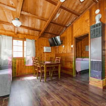Cabin 12 is a two bedroom cabin that sleeps up to 4 people. Two queen sized beds and a remodeled kitchen/bathroom make this cabin a comfortable accommodation.
